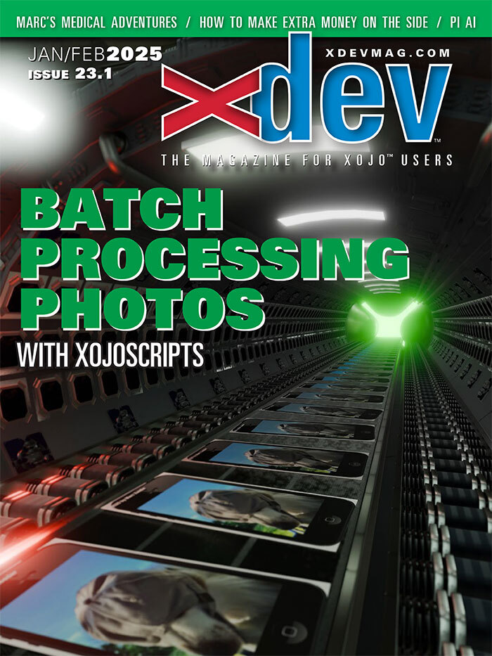 Plus: An interview with Anthony Cyphers, the genius behind GraffitiSuite; the internals of Xojo; how to add information to an Apple Contact; and how to use ffmpeg to extract frames from videos, and more!